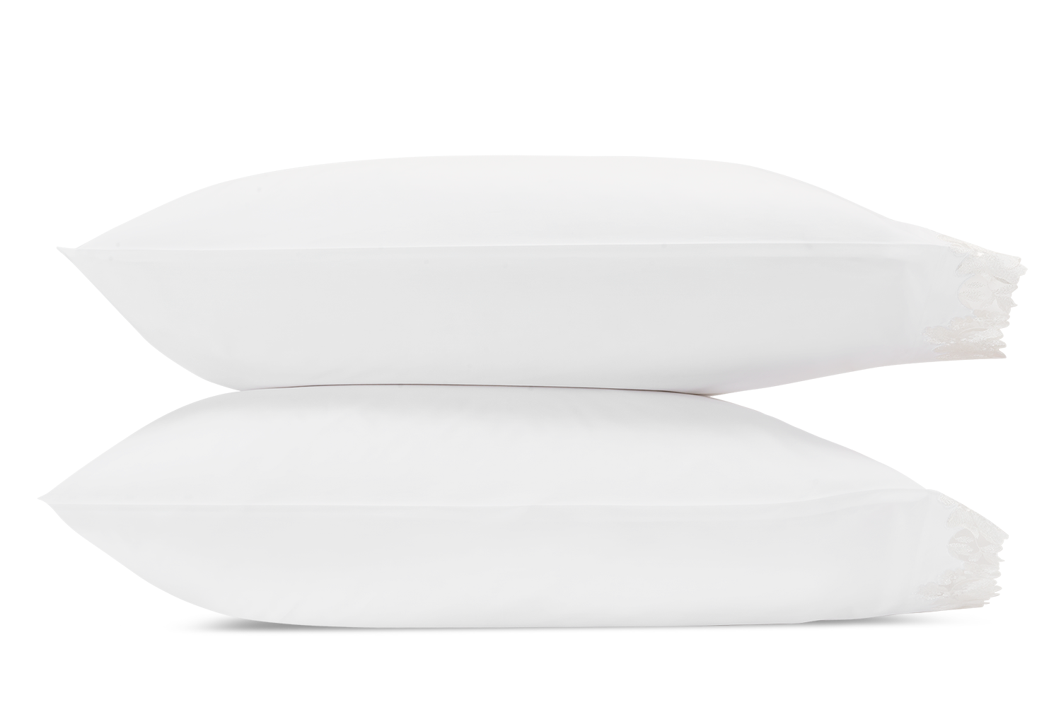 - Pillowcases have hand-cut Swiss lace along one edge