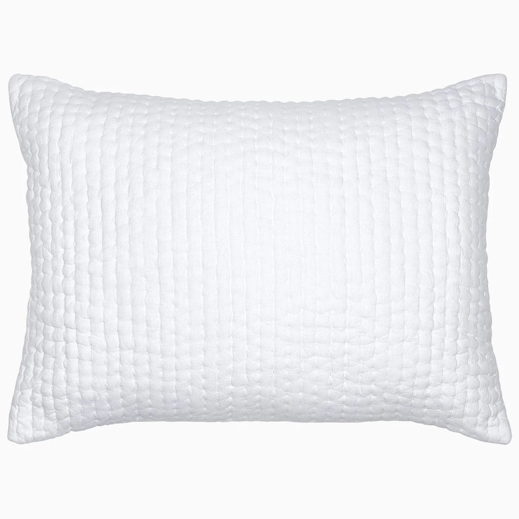 These super fine cotton chambray quilts are patiently stitched by hand. Crafted in thin layers of cotton chambray and lined with cotton batting, only the super fine fabric brushes against your skin, not the stitches themselves. All quilts are reversible.