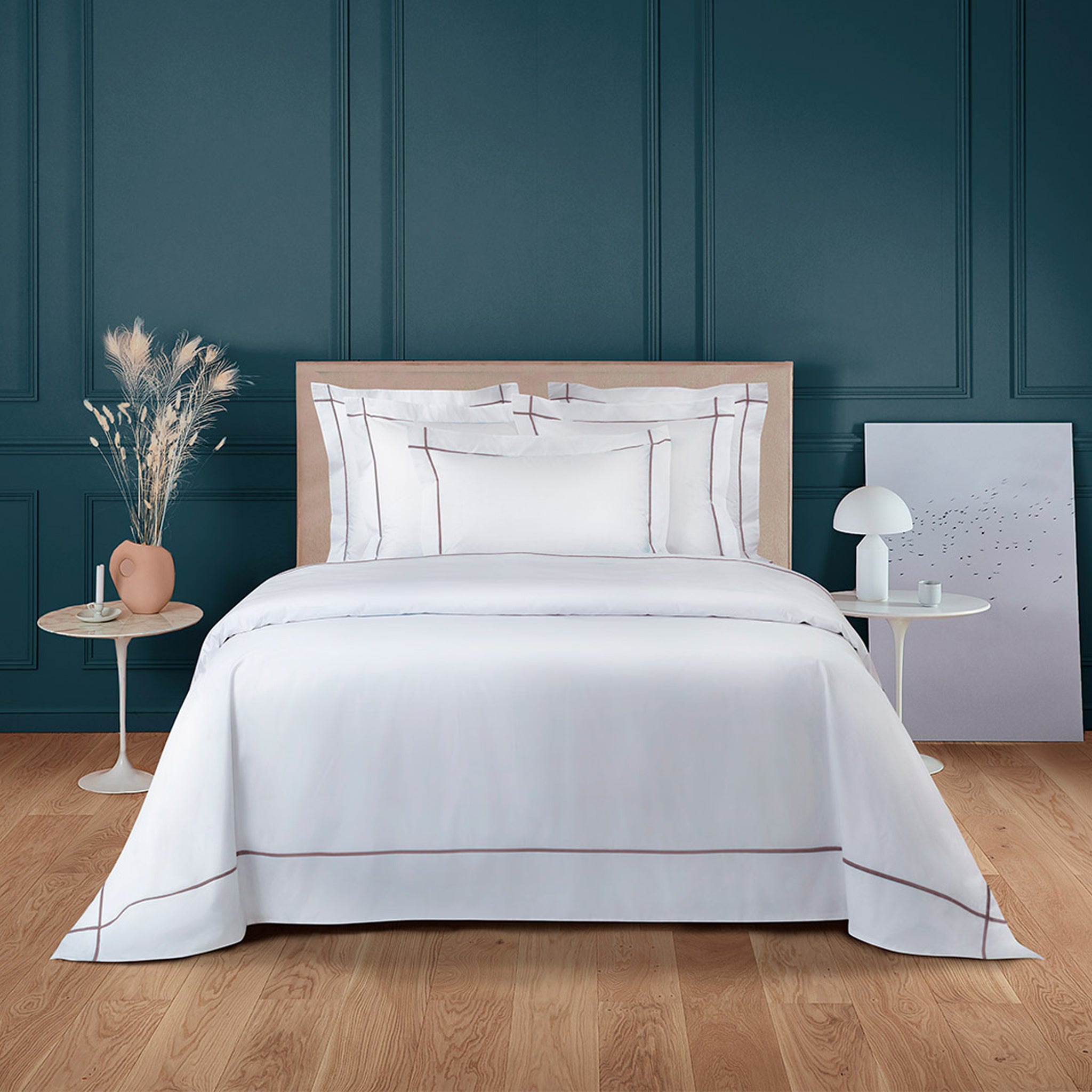 - Flat sheets have embroidery on top side with intersections in top two corners